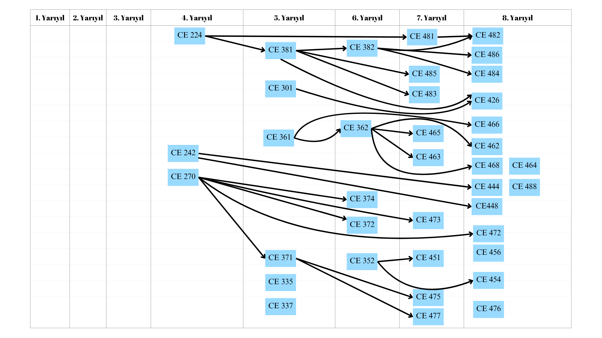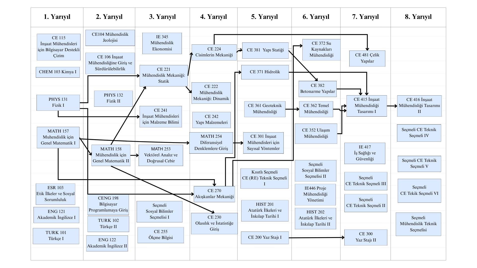 ÇANKAYA ÜNİVERSİTESİ İNŞAAT MÜHENDİSLİĞİ BÖLÜMÜ LİSANS ÖNKOŞUL TABLOSU